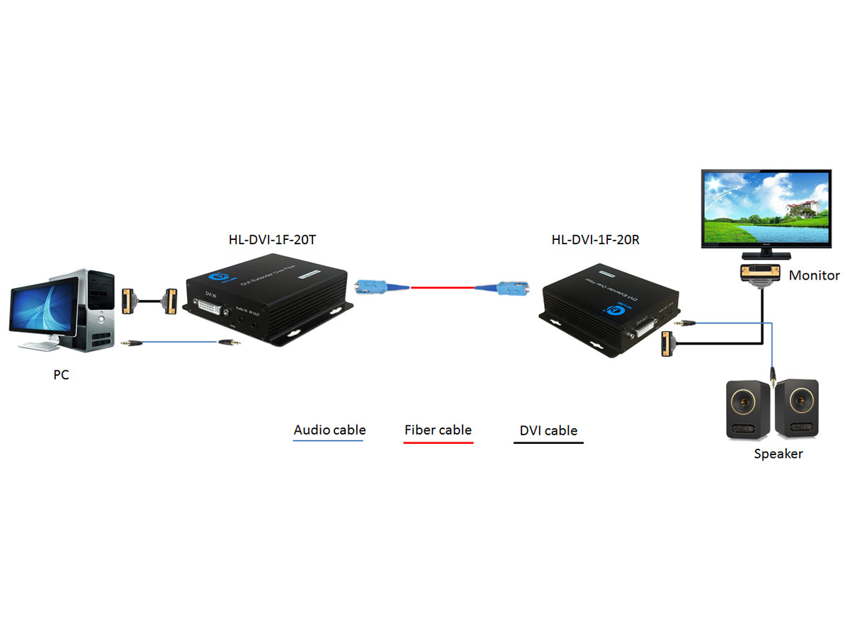 Bộ chuyển đổi DVI sang quang HO-LINK được sử dụng để mở rộng việc truyền tín hiệu hình ảnh DVI và âm thanh qua cáp quang với khoảng cách tối đa lên tới 120km mà không bị phụ thuộc vào độ dài giới hạn của cáp DVI.