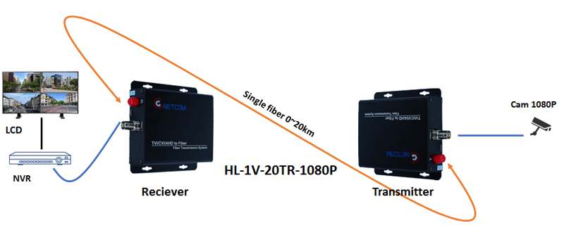 Video fiber converter Gnetcom 1 kênh HL-1V-20TR-1080P sử dụng công nghệ WDM, bộ chuyển đổi này chỉ cần một sợi cáp quang để truyền và nhận dữ liệu, giúp tiết kiệm phí cáp cho bạn.