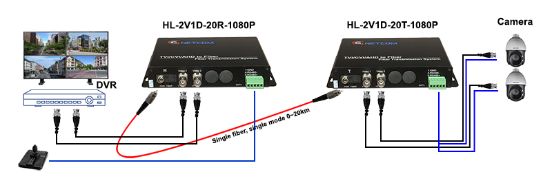 Video fiber converter Gnetcom HL-2V1D-20T/R-1080P sử dụng công nghệ WDM, bộ chuyển đổi này chỉ cần một sợi cáp quang để truyền và nhận dữ liệu, giúp tiết kiệm phí cáp cho bạn.Thiết bị hỗ trợ cổng điều khiển PTZ giúp bạn thuận tiện cho việc quản lý nhiều khu vực.
