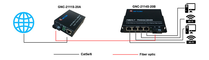 Bộ chuyển đổi quang điện Gnetcom GNC-2114S-20B | 4 Cổng Ethernet 10/100/1000M có thể truyền tín hiệu qua cáp quang single mode và multi mode. Sản phẩm được thiết kế cổng quang, cổng lan và đèn tín hiệu nằm cùng 1 phía giúp việc cắm dây tín hiệu và theo dõi đèn báo tín hiệu được dễ dàng hơn.