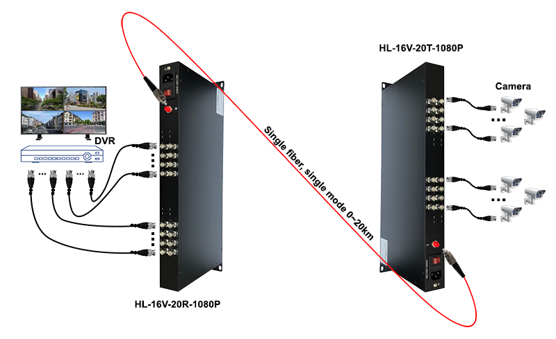 Converter Video quang 16 kênh Gnetcom HL-16V-20TR-1080P được thiết kế cho ứng dụng thi công camera AHD/ HDCVI/ HDTVI với khoảng cách truyển hình ảnh xa từ 0- 20KM với 1 sợi cáp quang Single-mode, 0-2km với 1 sợi cáp quang multi mode. Tín hiệu Video được truyền trên khoảng cách lớn.