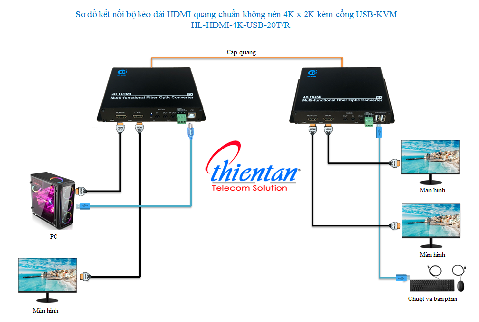 Bộ chuyển đổi HDMI sang quang HO-LINK| PN: HL-HDMI-4K- USB -20T/R