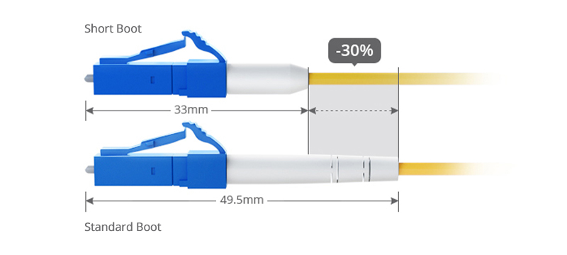 Đối với chiều dài khởi động, có cấu trúc khởi động tiêu chuẩn và cấu trúc khởi động ngắn. Khởi động tiêu chuẩn có thể bảo vệ cáp và đầu nối không bị hỏng, dây bị bung ra khỏi thân đầu nối, v.v ... Trong khi khởi động ngắn có cùng chức năng, nó được phân biệt bởi cấu trúc khởi động ngắn hơn. Đối với những nơi có không gian hạn chế cho đầu nối, cáp khởi động ngắn có thể là lựa chọn lý tưởng. Thiết kế cấu trúc khởi động ngắn có thể làm cho cáp dễ dàng đi qua không gian hẹp mà không làm giảm hiệu suất, giúp việc lắp đặt và bảo trì cáp quang hiệu quả hơn.