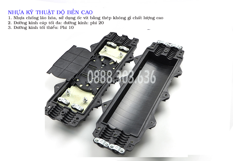 Măng xông quang 24 FO được sử dụng trong việc hàn nối và bảo vệ mối hàn cáp quang. Măng xông quang có thể treo trên không hoặc chôn ngầm với lớp vỏ bảo vệ chống nước tiêu chuẩn chống nước IP66 siêu bền, vít không rỉ, vỏ nhựa ABS.