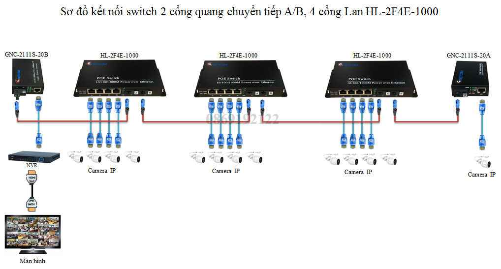 - Khoảng cách: 20km trên cáp quang Single mode.