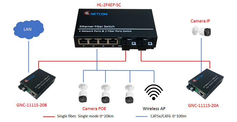 2 port fiber SC Data Rate:100M Connector:SC as default,FC/ST (optional) Distance: Single-mode Fiber 20km Wavelength:1310nm/1550nm |